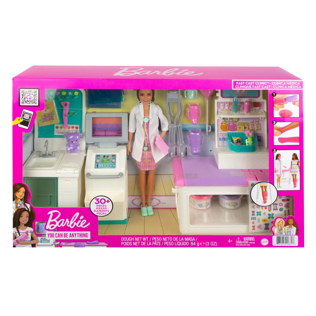- ?Explore a world of taking care of others with the Barbie® Fast Cast Clinic™ playset!