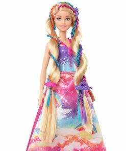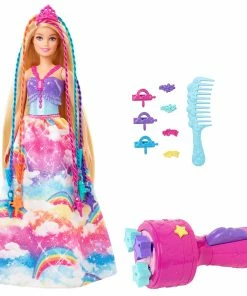 Young stylists can create the looks of their dreams with Barbie Dreamtopia Twist ‘n Style Princess doll! This Barbie princess doll features extra-long, 21.59cm hair, rainbow extensions that kids can twist and braid, and a tool that makes styling fun and easy. Comb Barbie doll’s hair, then plug two or three of the hair beads into the special styling tool and create fantastical hairstyles with the press of a button. Customise Barbie doll’s princess look with colourful barrettes and a tiara, then take her on an enchanted adventure! With so many storytelling and styling opportunities, Barbie Dreamtopia Twist ‘n Style Princess doll makes a great gift for fairy-tale lovers ages 3 years old and up. Doll cannot stand alone. Colours and decorations may vary. Key Features: ?Inspire fairy-tale storytelling and styling fun with Barbie Dreamtopia Twist ‘n Style Princess doll! ?This Barbie princess doll has extra-long, 21.59cm hair, rainbow hair extensions for twisting and braiding, and a tool that makes styling fun and easy. ?Comb her hair, then plug two or three of the hair beads into the styling tool and press to twist into all kinds of unique styles for Barbie doll! ?Clip 3 additional hair beads into any section of Barbie doll’s blonde hair to twist and braid along with her rainbow extensions. The possibilities are endless! ?Customize the look with colourful barrettes and a tiara, then take Barbie princess doll on a royal adventure. ?Barbie doll features a rainbow-inspired princess look with a sparkly bodice and removeable skirt for storytelling and fashion fun. ?Barbie Dreamtopia Twist ‘n Style Princess doll makes a great gift for 3 to 7 year olds, especially those that love fairy tales and hairstyling!