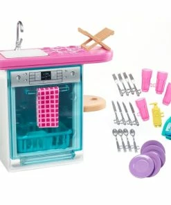 Furnish stories and dreams with this Barbie® collection of indoor and outdoor doll furniture packs. They make it exciting to spend a time in with popular themes — like a pet playhouse, living room and dishwasher for inside and a floatie set, brick pizza oven and picnic table for outside.