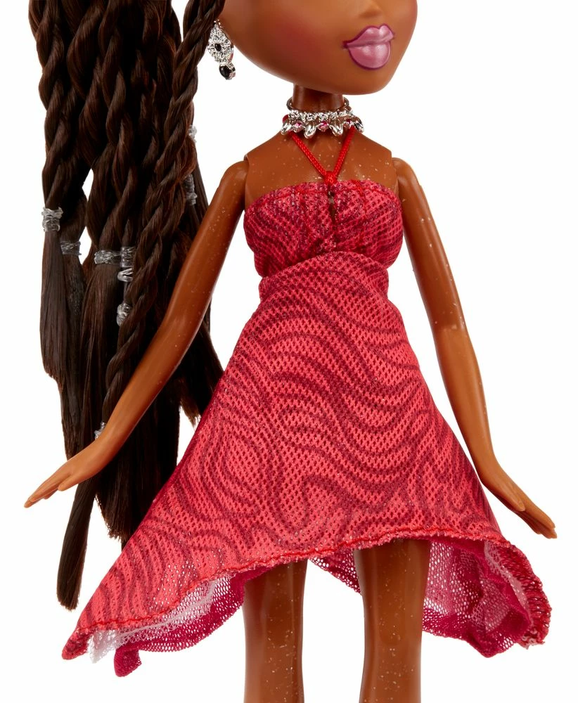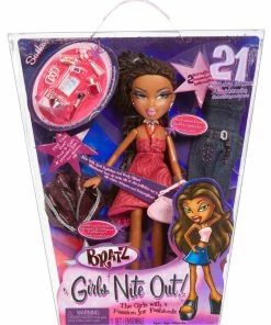 Each doll includes 2 outfits! one for a semi-formal party, and one for chillin’ out at the after party. Also includes a purse, sunglasses, bracelets, 2 pairs of earrings, necklace, lip gloss, perfume bottle, blush, compact mirror, makeup brush, 2 sets of hair clips, 2 pairs of shoes and a brush. Step out with Cloe! and the rest of the Bratz’ Girls Nite Out! Collect all 5 Bratz’ Girls Nite Out! dolls– Cloe?, Yasmin?, Jade?, Sasha? and Dana?. Available now!