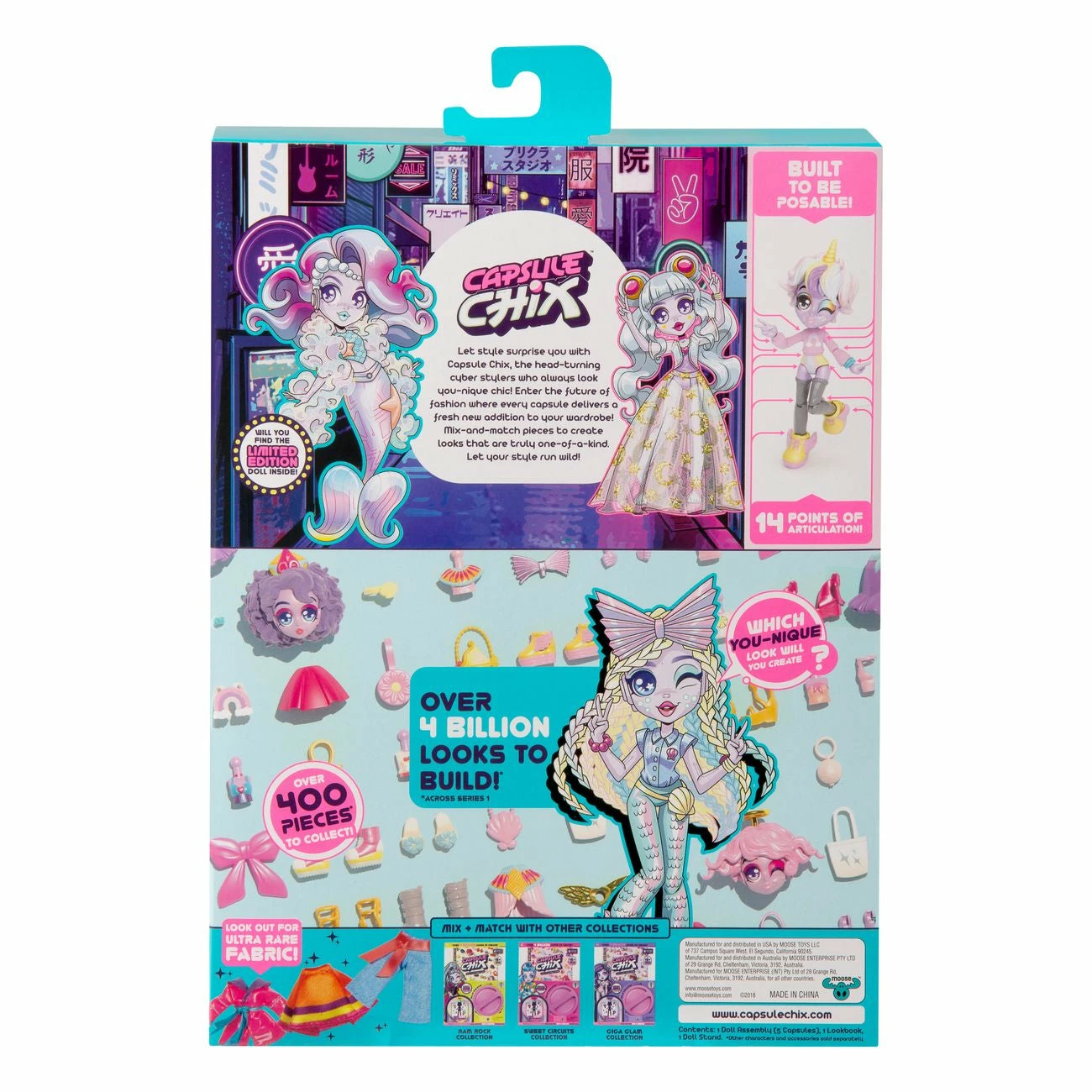The single pack contains 5 surprise capsules with 15+ pieces inside. Turn the style dial, roll out the capsules and put your Chix together – which fashions will you find inside? Watch out for the super rare Limited Edition Doll and rare and ultra rare fashion pieces.