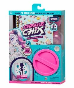 1 x Doll Stand. Let style surprise you with Capsule Chix! Fashionable android girls who are BUILT TO BE YOU- NIQUE! Build your very own one-of-a-kind doll by mixing and matching fashions and accessories to customize a look that’s totally yours! Create YOU-NIQUE looks with different hair, faces, tops, bottoms, shoes and accessories. There are over 4 Billion different looks to create when you mix it up across series 1.