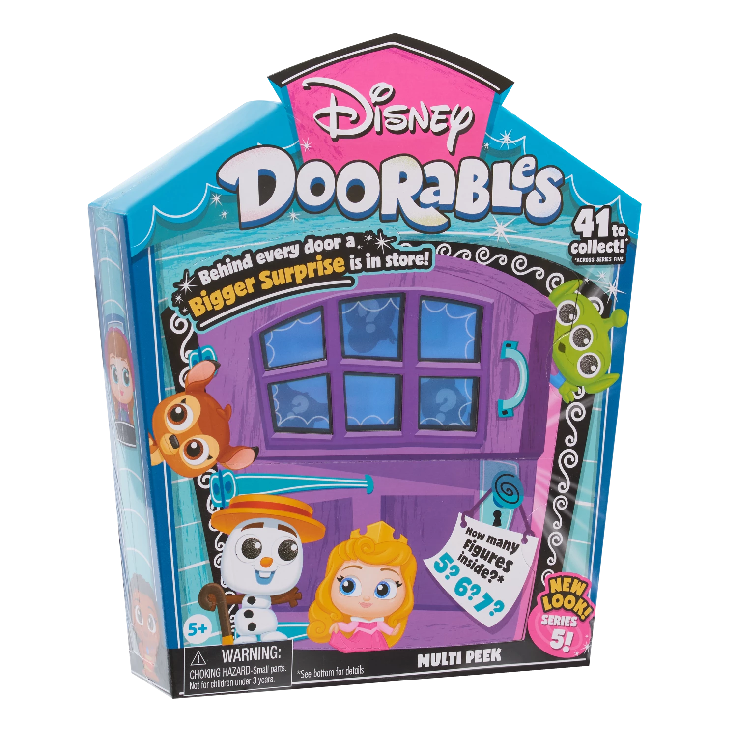 Behind every door, a surprise is in store with the Disney Doorables Multi Peek Series 5 collectible figures. Discover the ultimate unboxing experience with a fresh packaging design featuring multiple layers of peel and reveal secrets. Including five, six, or seven mini Disney Doorables collectible figures, each character stands approximately 1.5 inches tall and features stylized detailing with sparkly glitter eyes! There are 41 characters in Series 5 to collect from the stories of Mickey & Friends, Bambi, Cinderella, Tangled, Sleeping Beauty, The Aristocats, Toy Story, Moana, and Frozen. Ideal for collecting and trading. Recreate the world of Disney with all the Disney Doorables collectible figures and playsets. Ages 5+
