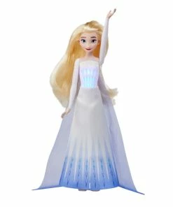 Kids 3 years old and up can sing along with the Singing Queen Elsa fashion doll as she belts out a snippet of “Into the Unknown,” a song featured in Disney’s Frozen 2 movie. Her molded bodice features flashing diamond-shaped lights that dance to the song’s beat. She includes batteries so the musical fun can start as soon as kids open the box. Move the switch on her back from Try Me mode to Play mode, and then lift her arm to start the tune. Kids will also love her removable white and blue movie-inspired skirt and shoes to match. Look for other Frozen toys, including the Singing Queen Anna doll, to expand your Disney doll collection and keep the musical adventures going! (Each sold separately. Subject to availability.)