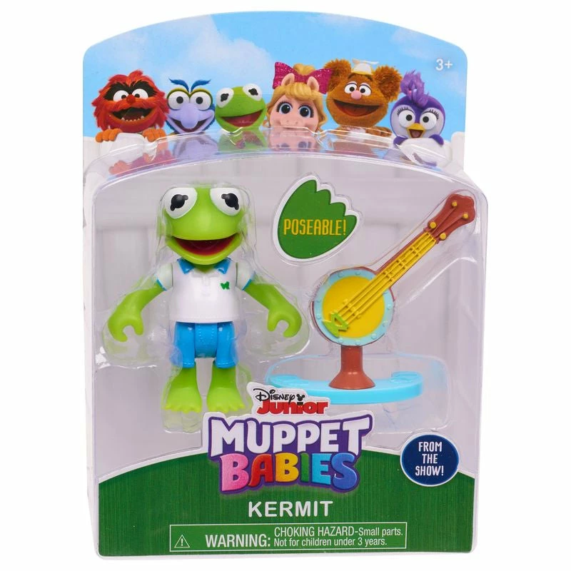 Relive the adventures of Disney Juniors muppet babies with the Kermit and Banjo Figure and Accessory Set! Kermit stands 2.5 tall and comes dressed in his signature outfit from the show. Kermit is articulated at the arms and legs so kids can move him into fun poses and play out their favorite scenes from the show. Kermit even comes with his iconic banjo! Collect all four Muppet Babies Figure and Accessory sets including: Kermit & Banjo, Piggy & Birthday Cake, Fozzie & Bow and Arrow, and Summer Penguin & Easel. Each set sold separately. Ages 3+
