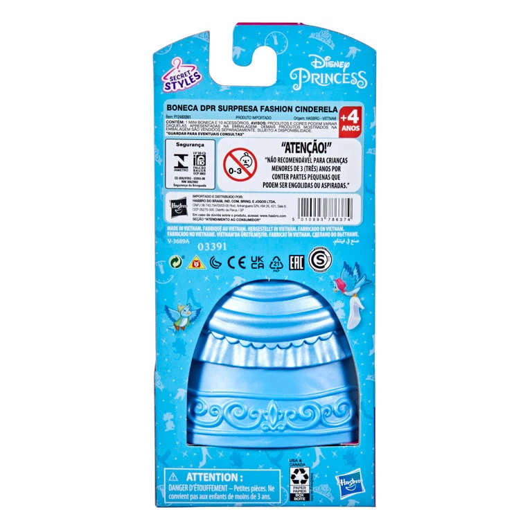 Discover a hidden world of fashions and fun with Disney Princess Secret Styles Fashion Surprise Cinderella. This 3.3-inch Disney Princess doll comes in a large skirt that opens up to reveal a dressing room inside, complete with mirror. Kids can dress up Cinderella, the unforgettable heroine of the classic Disney movie, in 2 different skirts inspired by the movie, 2 bodices, and 2 pairs of shoes they’ll find inside. They’ll also find 2 purses and 2 necklaces to complete her look. Fashion Surprise Cinderella makes a great gift for girls 4 and up, and they can also look for more Disney Princess Secret Styles dolls and playsets featuring Disney Princess characters like Tiana and Ariel for more fashion discovery fun. (Sold separately. Subject to availability.)