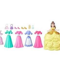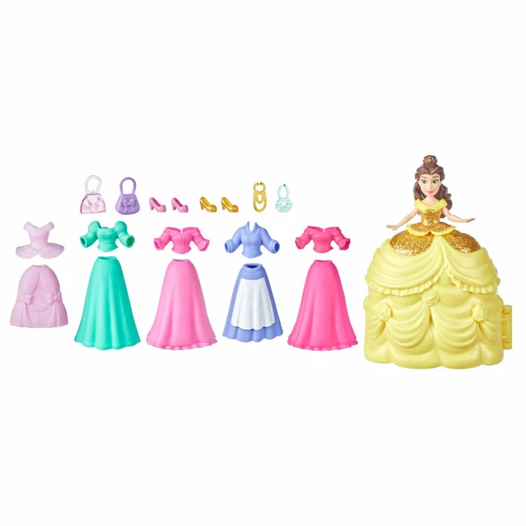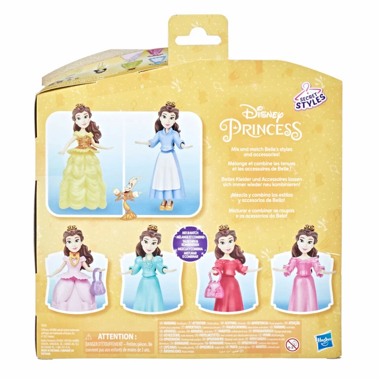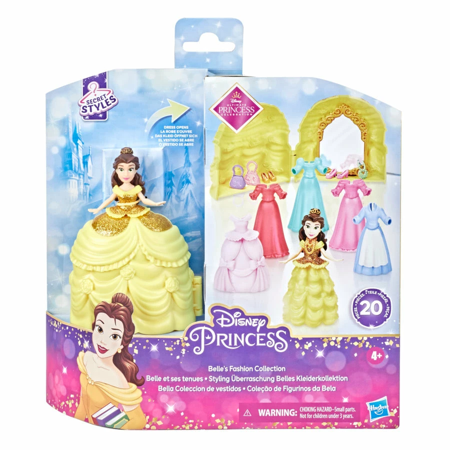 Discover a hidden world of fashions and fun with Disney Princess Secret Styles Belle’s Fashion Collection. This 3.3-inch Disney Princess doll comes in a large skirt that opens up to reveal a hidden dressing room, complete with a mirror. Kids can dress up Belle, the unforgettable heroine of the Disney classic, Beauty and the Beast (1991) in 6 different skirts inspired by the movie, 6 bodices, and 2 pairs of shoes they’ll find inside. They’ll also find 2 purses and 2 necklaces to complete her look. Belle’s Fashion Collection makes a great gift for girls 4 and up. For more fashion discovery fun, kids can look for other Disney Princess Secret Styles dolls and playsets featuring Princesses like Ariel, Cinderella, and Tiana. (Sold separately. Subject to availability.)