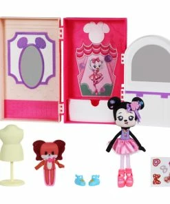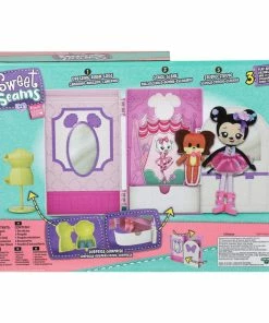 This special Sweet Seams Deluxe Pack opens out to reveal Minnie’s Ballet Studio with three different play areas – A Dressing Room, Studio and Stage. Minnie Mouse and her sweet pet dog Fifi are ready to Prep, Practice & Perform! Help Minnie practice in front of the mirror to nail the perfect pirouette in her pink Tutu with floral details. She has elongated dangling arms and dangling legs with knotted limbs and whimsical homespun details.