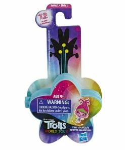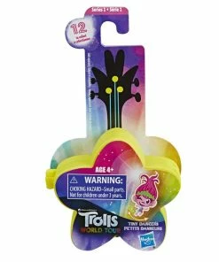 Tiny Dancers are little figures that shimmy and shake! These collectable toys take favorite characters from Trolls World Tour and turns them into fun collectables that kids can play with or wear! Features 12 different fun, stylized characters inspired by the rock world in the movie Trolls World Tour, and each package is a surprise! You don’t know which one you’ll get until you open it. Maybe it’s the V.I.T. (Very Important Troll)! Attach the figure to the included ring and barrette and make them dance. And the star or flame-shaped package turns into a pair of fun glasses that kids can attach figures to, as well. Wear Tiny Dancers everywhere, or share with a friend. Kids can collect all the Tiny Dancers (Each sold separately. Subject to availability.) Put ’em on and make ’em wiggle! As this item is an assortment we cannot guarantee a specific style, please let us choose on your behalf or state in the comments section the style you would like and we will do our best. Pictures indicative only. Each sold separately.