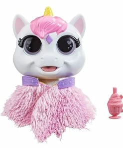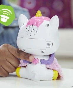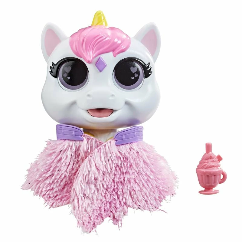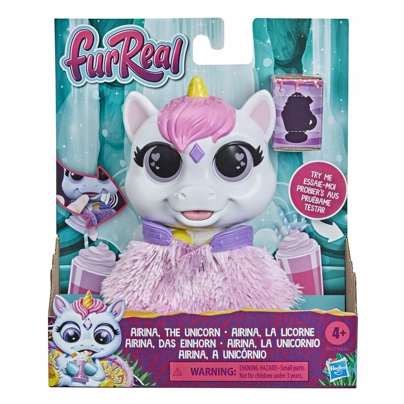 FurReal Airina the Unicorn & Flitter the Kitten pets are wonderfully fantastical, and their color-change eyes reveal many moods – when they’re sleepy, their eyes are blue; when green, you know they’re hungry. Red eyes? They’re just a bit cranky! Yellow eyes mean they’re feeling happy. And just look at those gorgeous fabric wings! Includes pet, accessory, and instructions. Requires 1 “AA” battery, included for demo purposes.
