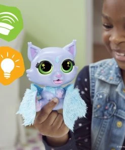 The furReal Flitter the Kitten Color-Change Interactive Feeding Toy is a fantasy pet that’s sure to delight kids ages 4 and up. The kitten’s color-change eyes reveal her many moods in a rainbow of colors – when she’s sleepy, her eyes are blue; when they’re green, you know she’s hungry. Red eyes? She’s a bit cranky! Yellow eyes mean she’s feeling happy. And she loves it when you flap her beautiful fabric wings! Includes pet, accessory, and instructions. Requires 1 “AA” battery, included for demo purposes. 4+