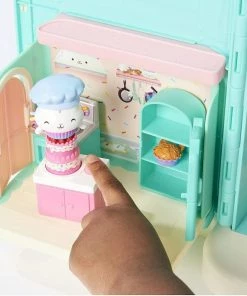 Then, set Cakey on top of the cake and press the button to make it spin for a sprinkle party! It’s so much fun! With so many features, the Bakey with Cakey Kitchen is perfect for exciting pretend play and makes a great gift for kids. Use it with MerCat’s Primp and Pamper Bathroom and Pillow Cat’s Sweet Dreams Bedroom (each sold separately) to build out your Gabby’s Dollhouse world.