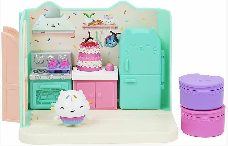Bake up a storm with Cakey Cat in the Gabby’s Dollhouse Bakey with Cakey Kitchen! This deluxe Gabby’s Dollhouse playset is filled with fun details and surprises to explore, bringing the magical room from the show to life.