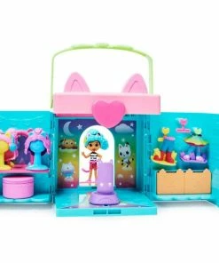 Then, don’t forget to unbox your Dollhouse Delivery, to reveal your surprise accessory, just like Gabby does in the show! When she’s ready to go, use the plastic rope-ladder to climb up to the photo studio, where you can choose from one of 4 different backgrounds for your pretend photo-shoot. After placing the tripod and camera on the balcony, Gabby is ready to strike a pose! After a fun-filled day of pretend play fashion shows and Cat-tastic photo shoots, place all your outfits and accessories back into the closet, close it up, turn the kitty lock to store all your wonderful treasures inside, then use the attached handle to carry your playset with you wherever you go!