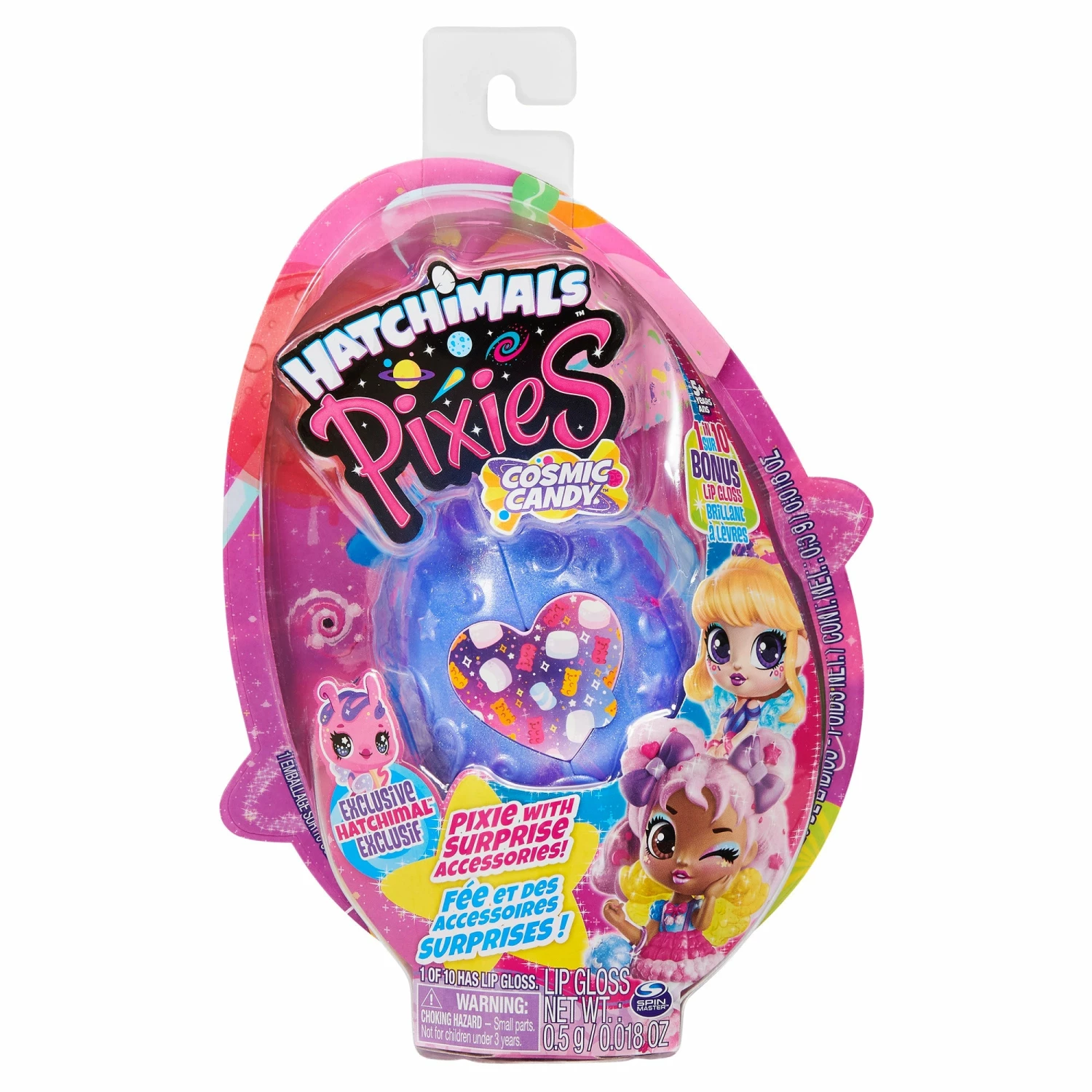 Each Pixie includes two mystery accessories, a candy themed doll stand and Hatchimals stickers. One in ten eggs also come with a lip gloss.