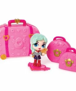 Hatchimals Pixies are leaving Hatchtopia to explore our world! These ultra-fashionable Vacay Style collectible dolls are hitting the most popular spots around the globe. The Vacay Style Pixies are dressed in the most fabulous outfits, inspired by their stylish locations! First, the Pixies are visiting five international cities like Tokyo or Paris in the Pink Passport Series. Next, theyre off to five U.S. locations like New York City or Miami in the Purple Passport Series! Open the glittery suitcase to discover your perfect Pixie, one surprise accessory, a display stand and themed stickers to decorate the suitcase. Next, crack open both of your Pixies carry-ons to find two more mystery accessories, like sunscreen, a beret, selfie stick, floral headband and more. Plus, theres a 1 in 10 chance you may even find an exclusive sweet stowaway Hatchimal inside so cute! Like all Hatchimals Pixies, the Vacay Style Pixies have magical glittery wings that really flutter, poseable heads and colorful hair. When your Pixie isnt sightseeing, display her on her stand, store her accessories in the suitcase, or use the carry-ons to play with your Pixie. With a total of 10 Pixies Vacay Style dolls to collect, where will you travel? Join the glittery globetrotters, Hatchimals Pixies Vacay Style, decorate the suitcase with stickers and travel the world in style!