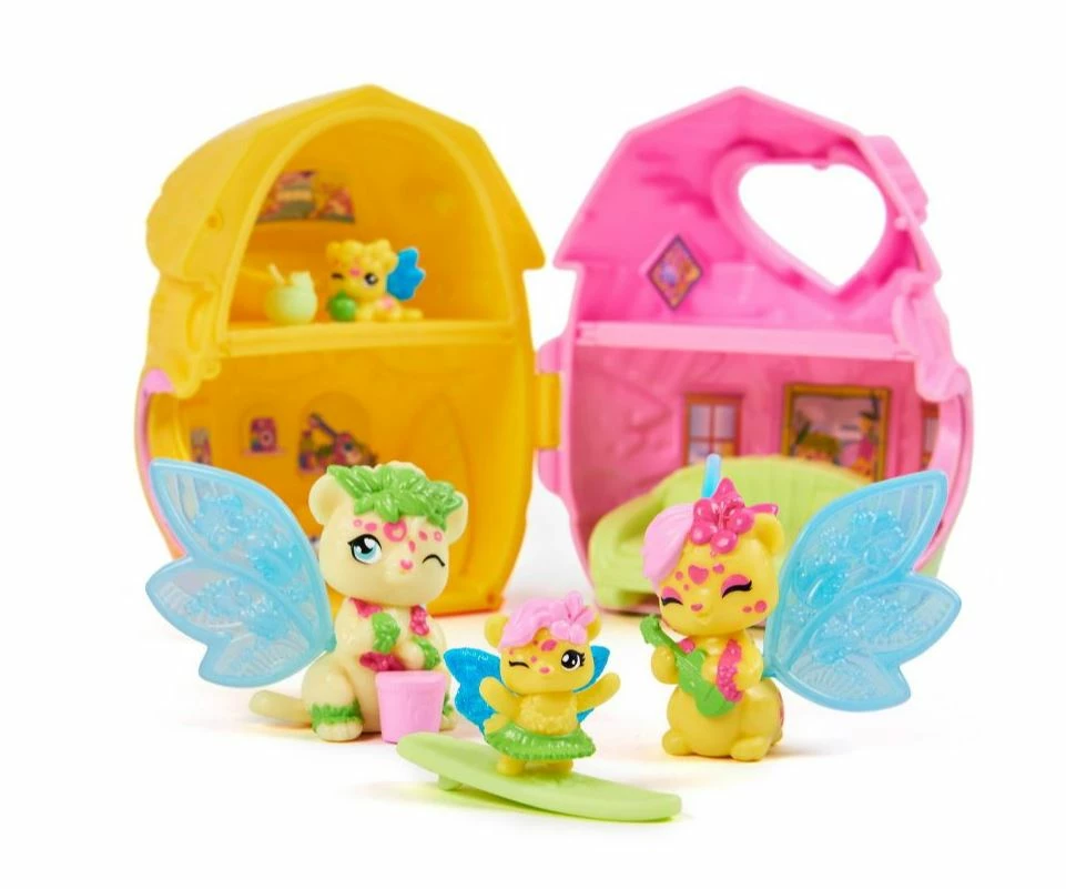 With four Family Hatchy Homes (toys each sold separately), there’s so many fun adventures waiting to be had inside the koala camping tent, penguin snow lodge, leopard tiki hut and unicorn glamping house! Crack the heart on the back of the egg to find an accessory and hatch the lock on the side to open the home.