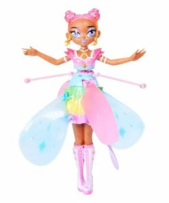 SHE REALLY FLIES: The Crystal Flyers Rainbow Glitter Idol Pixie can really fly! Launch her from the base or lift her into the air, then use your hands to guide her. She’ll sense if your hands are high or low!