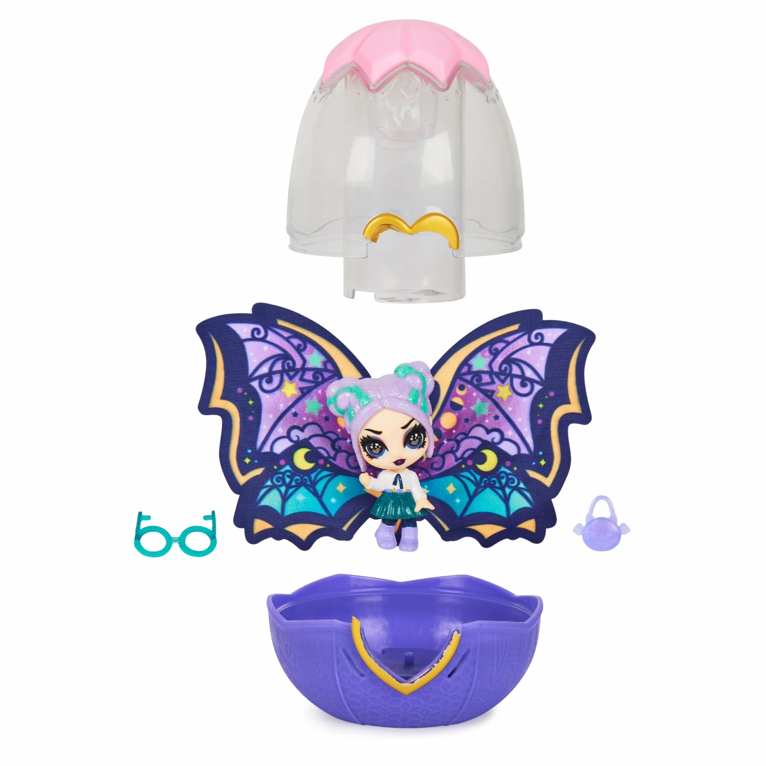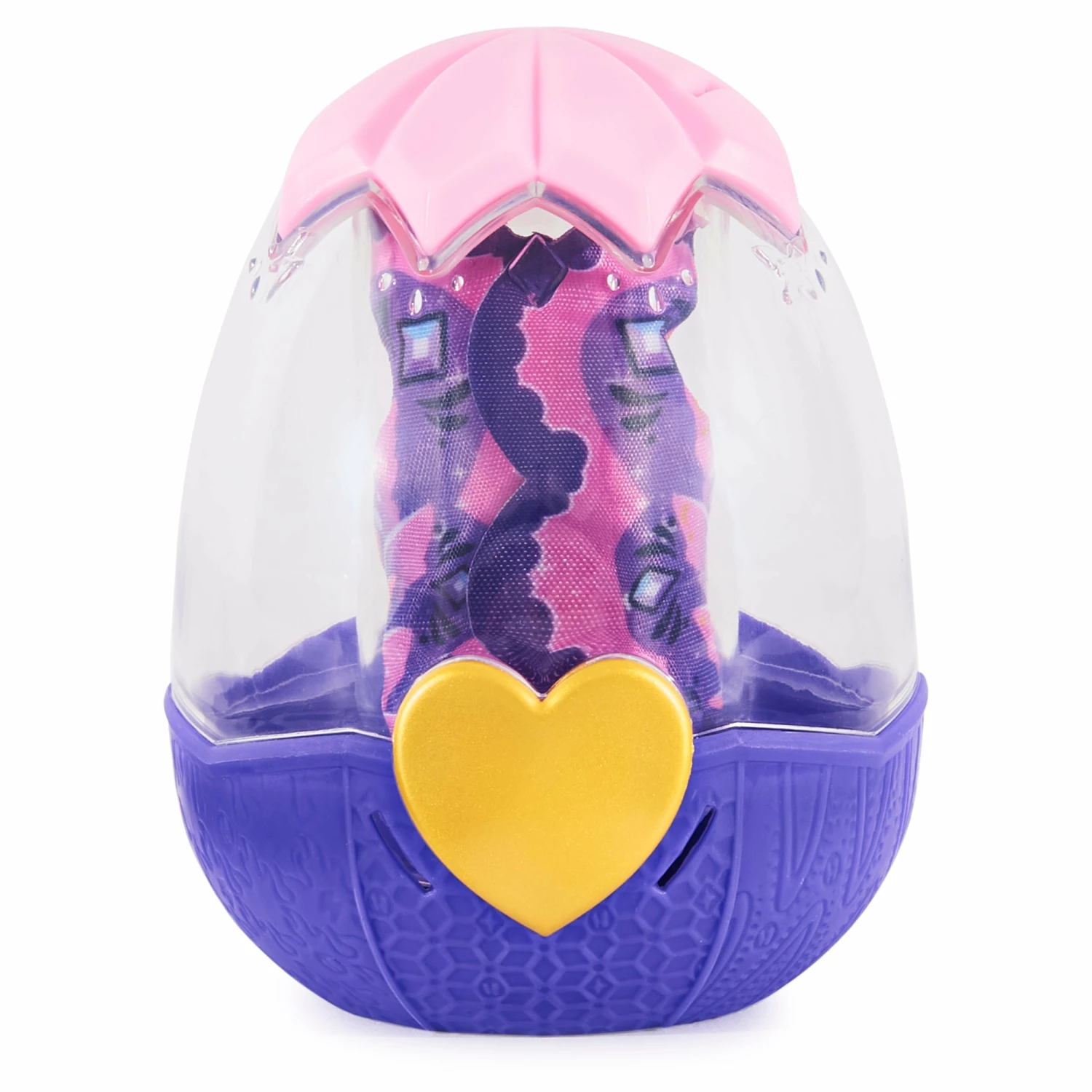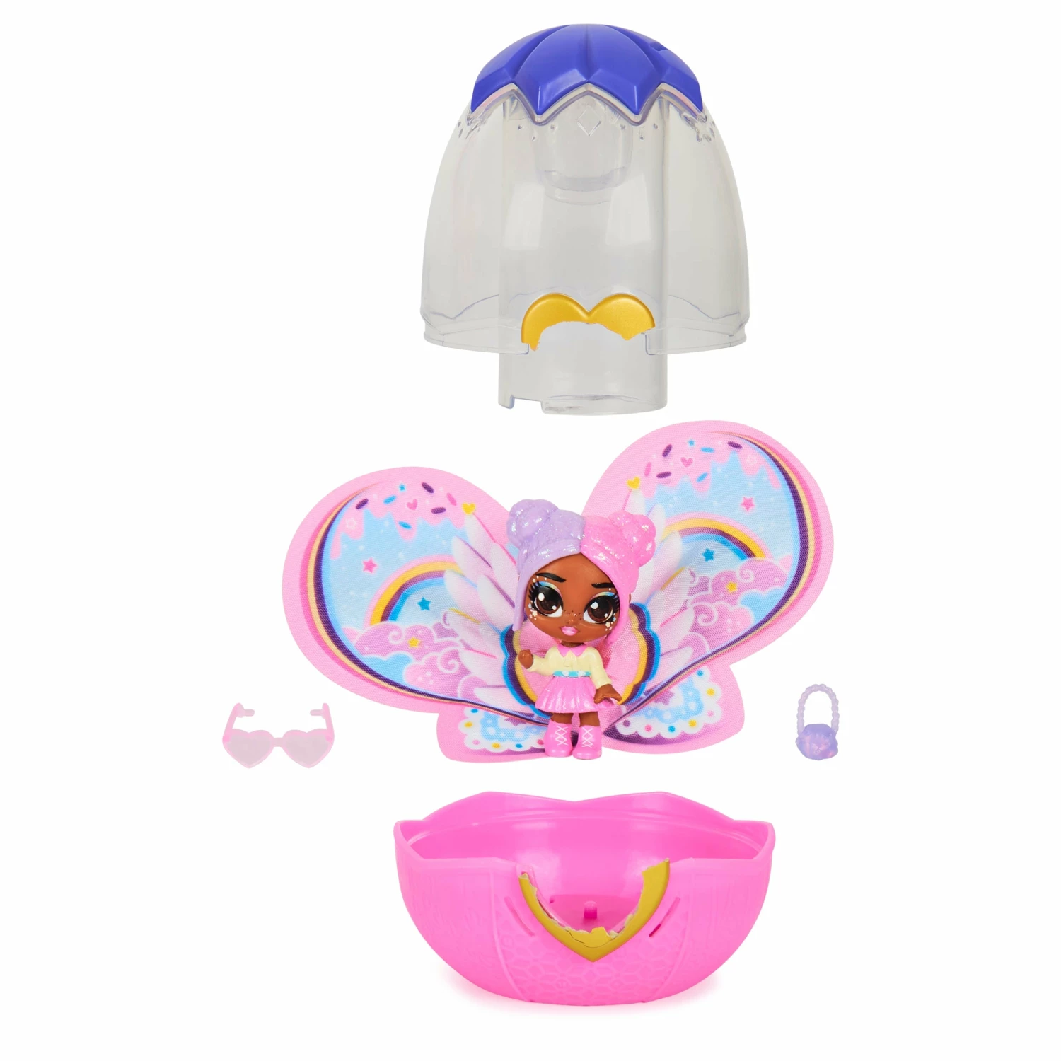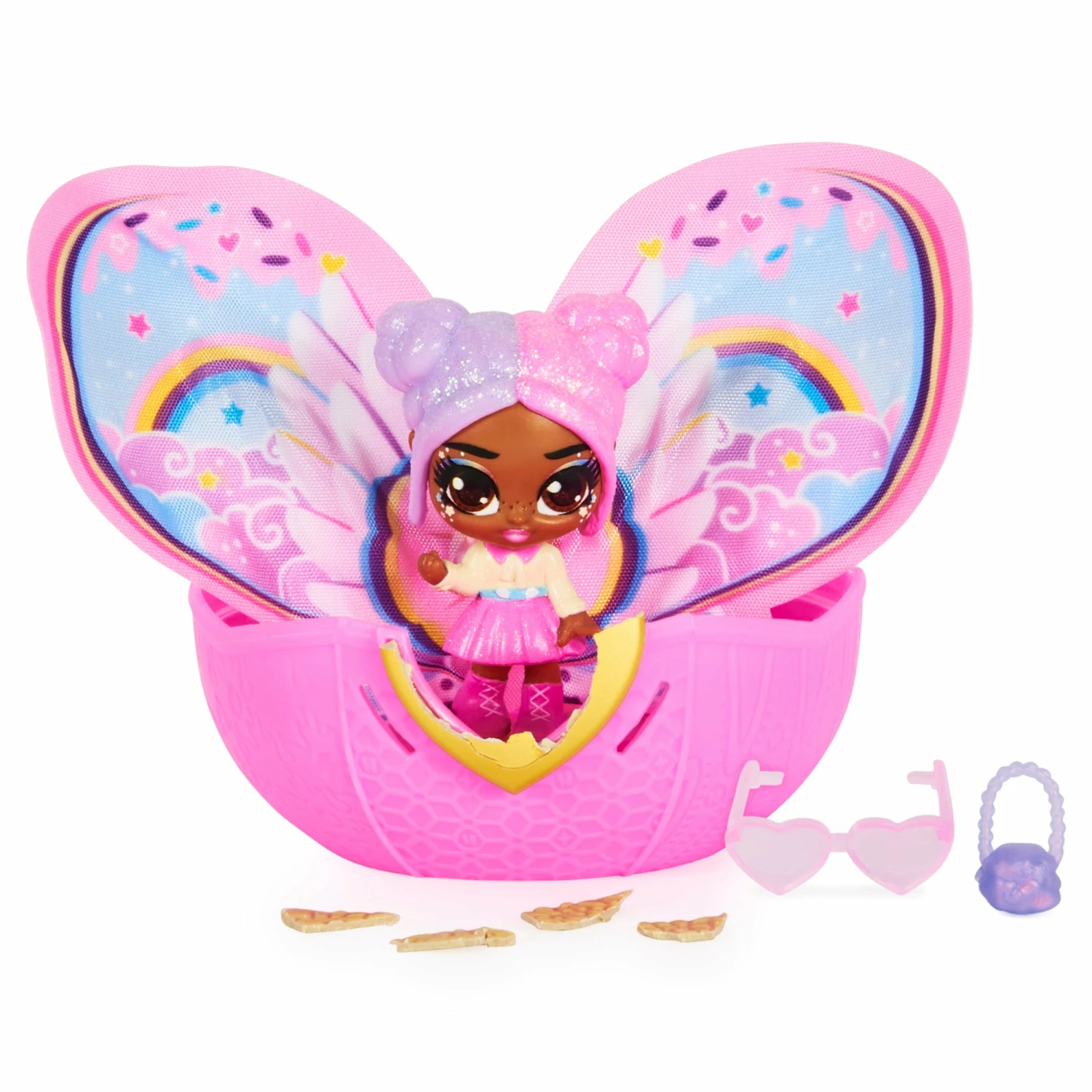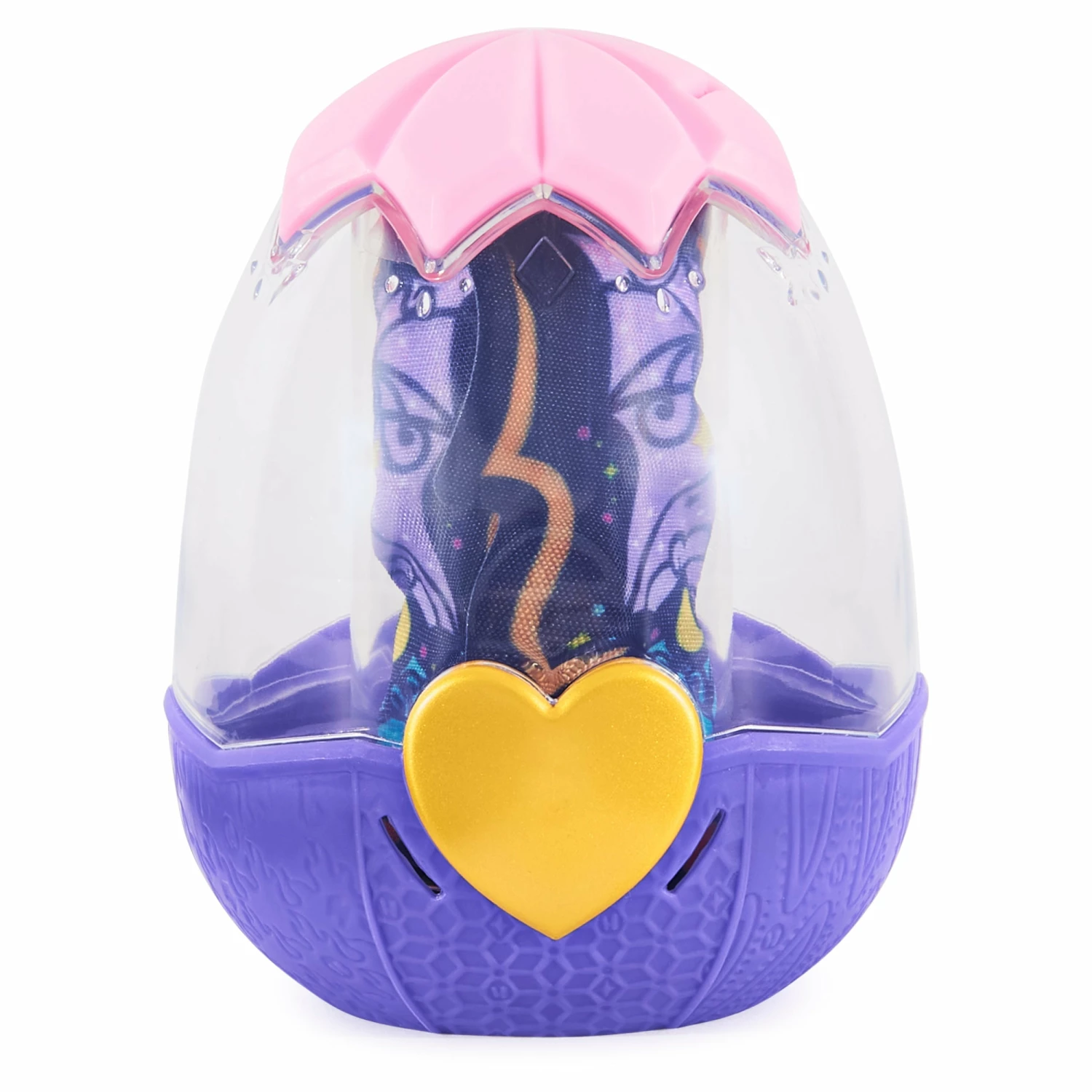 Every Wilder Wings Pixie has a different look, two themed accessories and comes in a new style of egg. The egg’s clear lid gives you a hint at which style of Pixie is inside, she comes wrapped inside her gorgeous wings! To start hatching, crack the heart on the front of the egg and remove the lid.