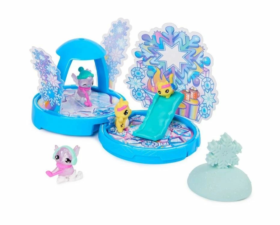 Includes: 4 Hatchimals CollEGGtibles, 1 Playset, 2 Accessories, 3 Backdrops, 2 Floor Inserts, 1 Checklist, 1 Instruction Sheet