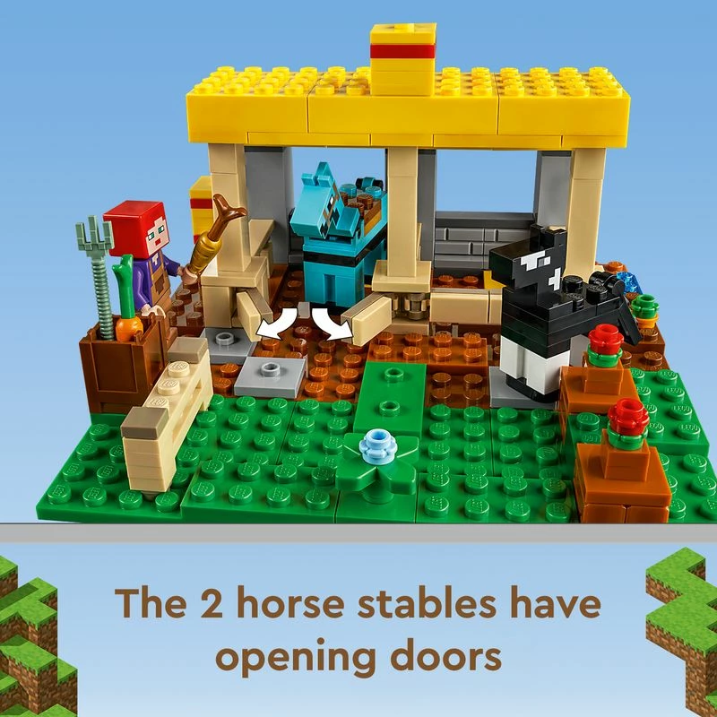 • As kids rearrange and rebuild LEGO® Minecraft™ The Horse Stable (21171), they’ll discover endless play possibilities to enjoy with the familiar Minecraft characters.