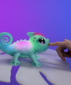 Sunny is an interactive, light-up chameleon with over 30+ sounds and emotions. Sunny is full of personality with so many colorful moods. This soft and squishy chameleon lights up in light green and giggles when she’s happy, she glows red when angry, glows blue and whimpers when sad, and so much more! When Sunny is feeling super happy, this vivid lizard will sing and glow with beautiful, rainbow lights!