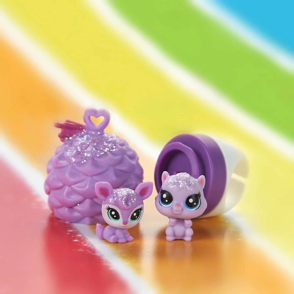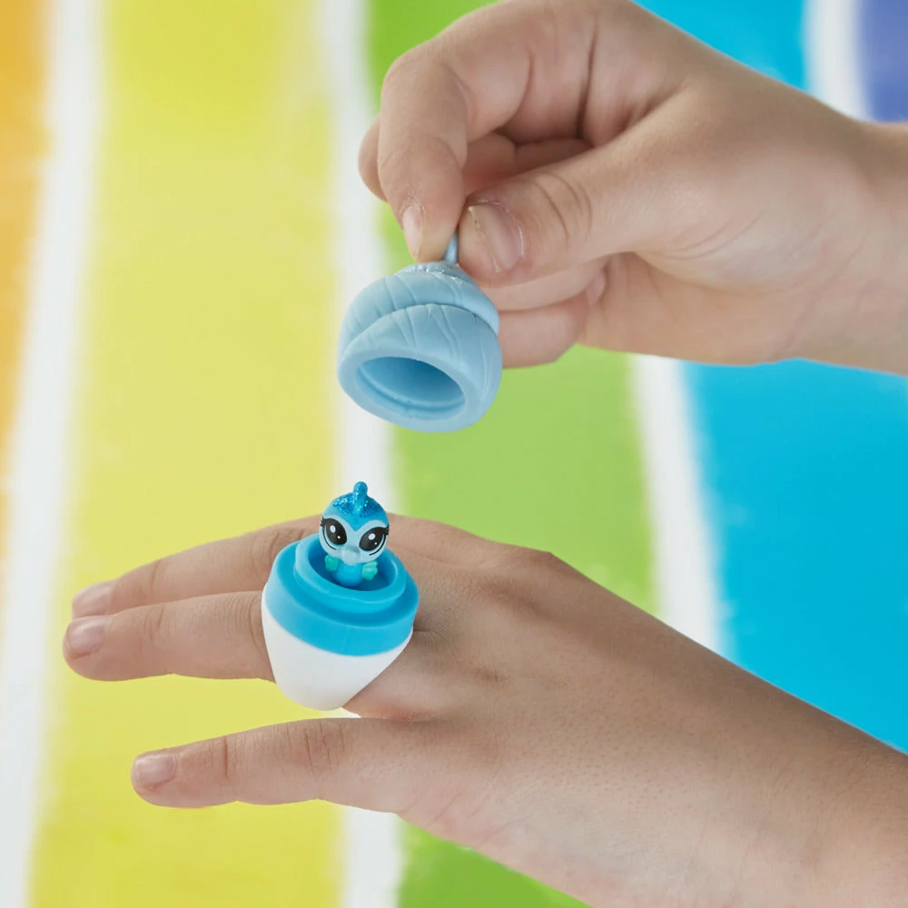It’s a fun way to play with (and wear!) these awesome Teensie scale pets — each with sparkly deco in a different color of the rainbow, and complete with their own habitat to snuggle up in! Best of all, each habitat attaches to a wearable ring base so they can be worn. And then there’s the thirteenth member of the pack – an incredible surprise pet with amazing deco, habitat, and ring base of its own!