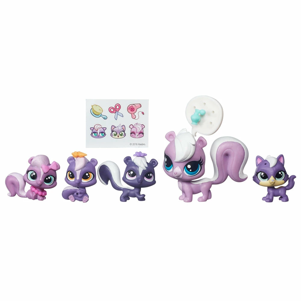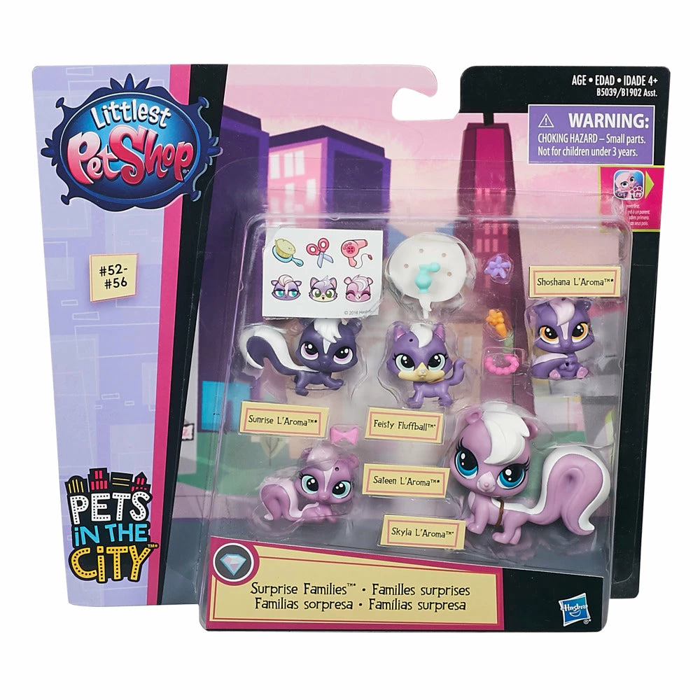 This adorable pack of 1 pet and 4 little pet friends looks picture-perfect – but it’s clear that one of the little pets has gotten mixed up with the wrong family! Includes mommy skunk (Skyla L’Aroma #52), 3 baby skunks (Sateen L’Aroma #54, Shoshana L’Aroma #55, Sunrise L’Aroma #56), and 1 kitten (Feisty Fluffball #53).