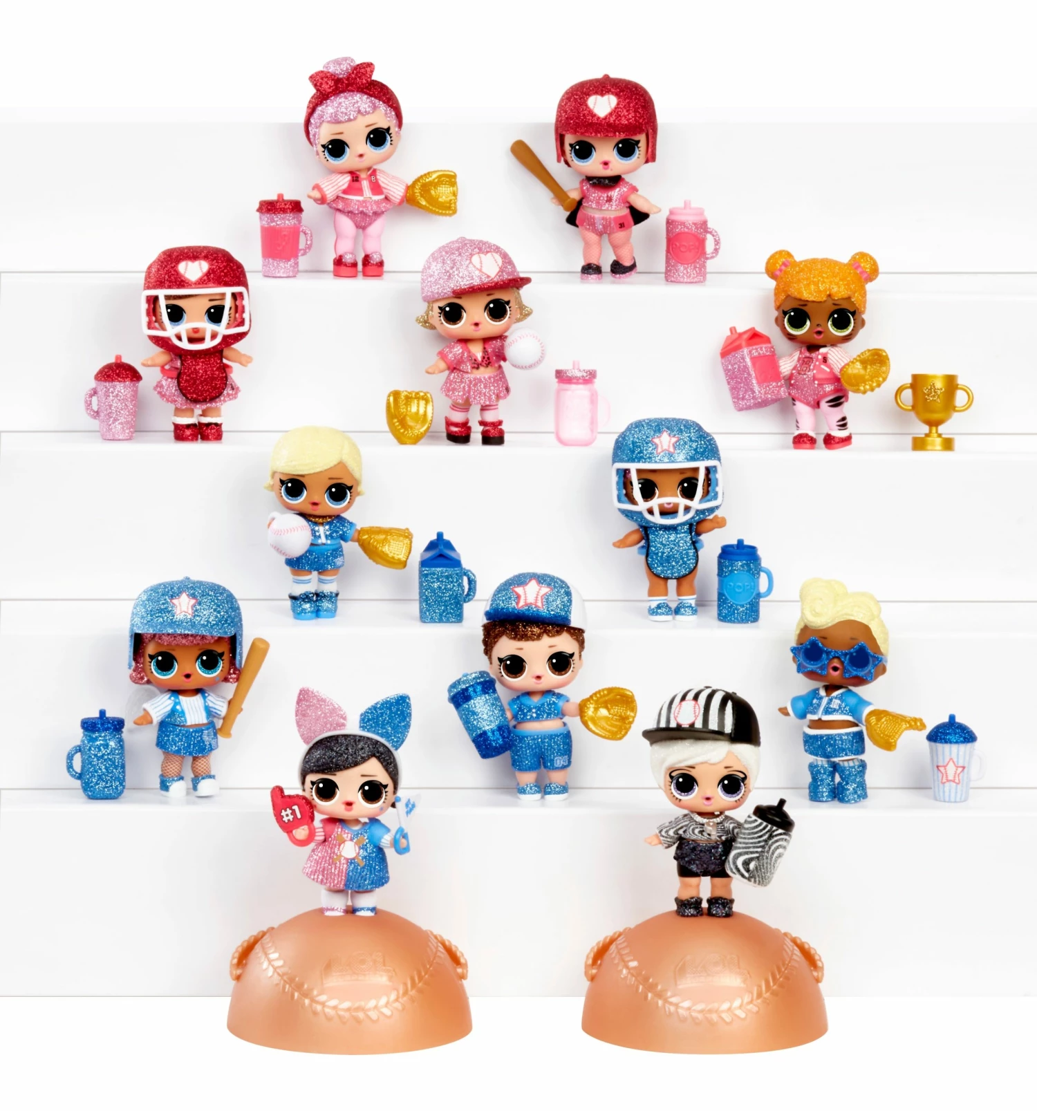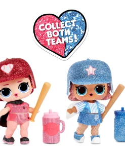 Unbox 8 sparkly surprises with the New Sports Glitter Series. Twelve fan favorite characters got a sparkly makeover, and come with super sparkly sports themed accessories! Series 1 includes 2 baseball teams to collect! Will you route for the blue team or red team? Feed or bathe doll to discover water surprises! Collect all 12 characters.