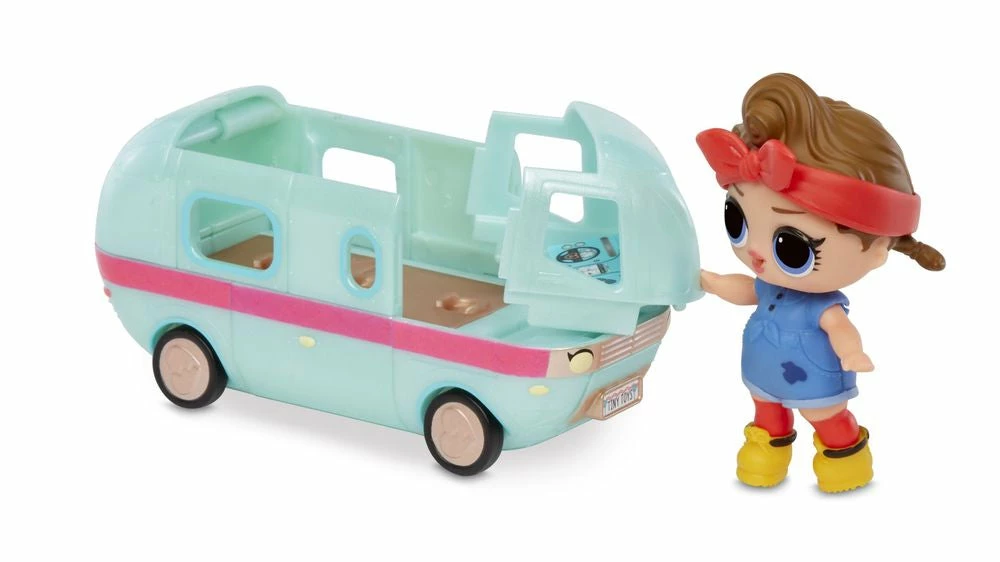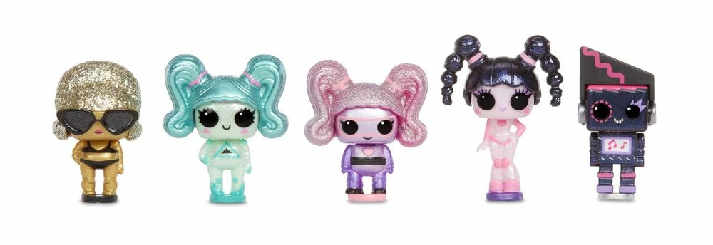Give your favorite L. O. L. Surprise! dolls their very own toys to play with when you unbox 5 surprises in L. O. L. Surprise! Tiny Toys! Each box includes 5 surprises with a tiny robot toy that’s the perfect size for L. O. L. Surprise! dolls (sold seperately). Each Tiny Toy robot has a removable wig that can be mixed and matched between characters. Includes 1 of 18 pieces to build the tiny Glamper that 3 tiny robots can ride in around the town (1 part in each tiny tot, each sold seperately). Each Tiny Toys package also includes a stackable plastic cube with a backdrop for storing and displaying your Tiny Toys robot.