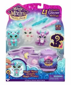 The Sparkle Magic Mega Pack includes 4 Mixlings with an exclusive sparkly finish plus one mystery sparkly Mixling in the included Cauldron. Who will you find inside?