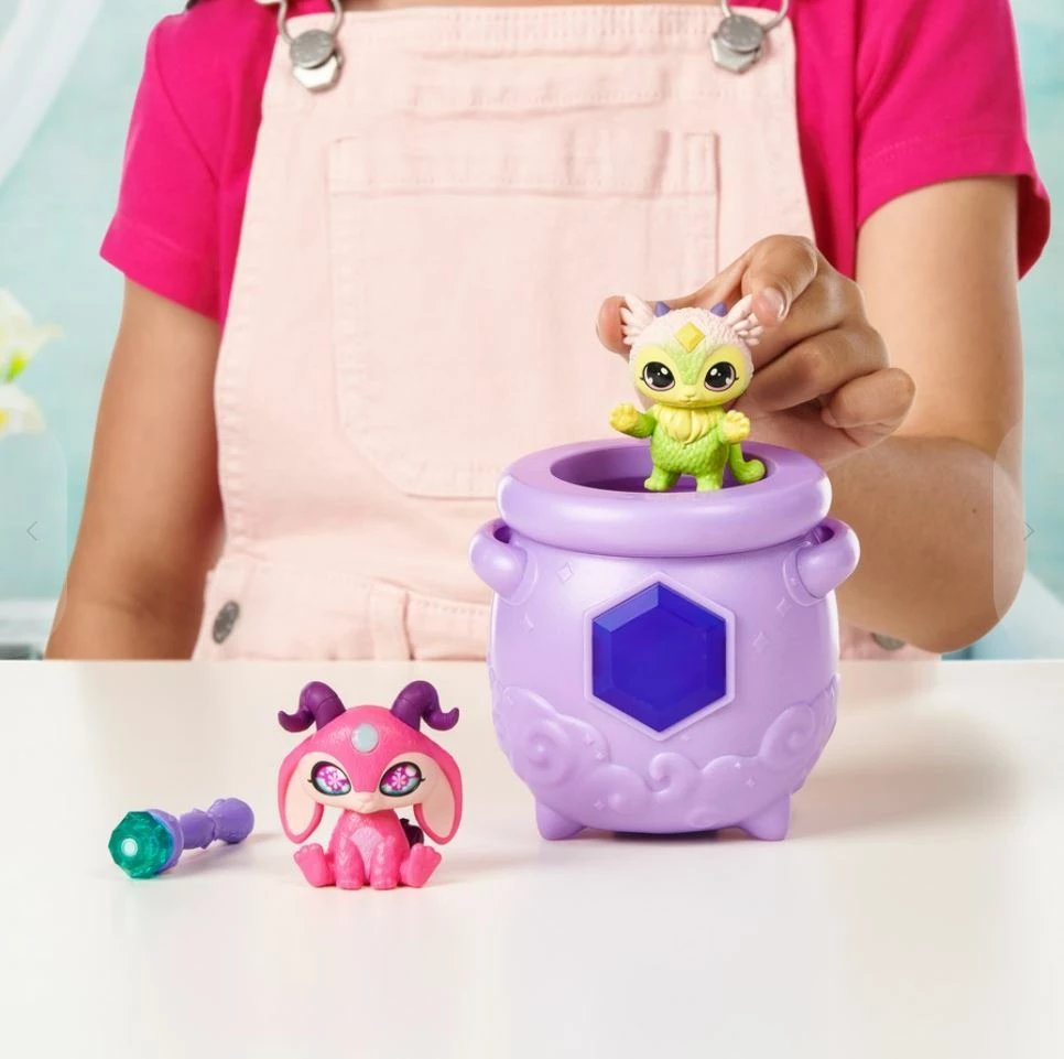 Complete the magical unboxing to discover which 2 Mixlings you have created with the Tap & Reveal Cauldron.Start making magic by lifting off the Cauldron’s lid to find your magic wands. Rub the Cauldron’s magic gem to reveal what type of Mixlings you’ll magically find inside – will they be Common, Rare or Ultra-Rare? Now tap your magic Wand to the rim of the Cauldron and say the magic words ‘Magicus Mixus’ and…wow! 2 Mixlings have magically appeared in the Cauldron!