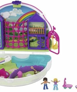 Includes Polly Pocket Rainbow Dream purse compact, micro Polly and Shani dolls, skateboard accessory and sticker sheet. For ages 4 and up.