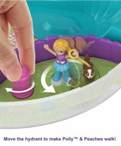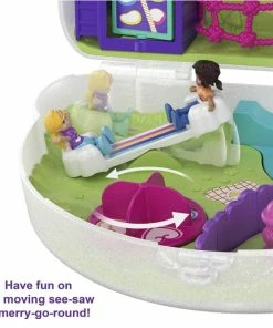 It’s time for tiny fun in the sun with Polly Pocket! This adorable Rainbow Dream purse compact opens to reveal an exciting playground adventure with micro Polly and Shani dolls, 8 fun features and a skateboard accessory with rolling wheels! There’s so much to explore and fun activities to reveal: the girls can test their skills at the rope climbing area; swing on the pullout swing; spin on the merry-go-round; skate in the skatepark; see-saw; spin the hydrant to walk the dog in the dog park; hang out on the picnic blanket and more! It’s so much fun at the playground!