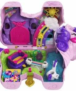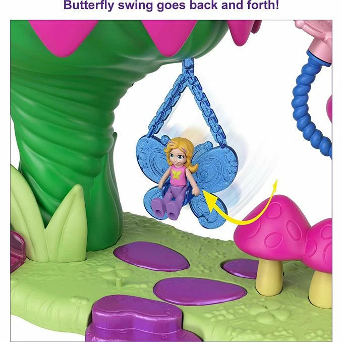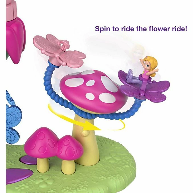 Get ready for Theme Park Adventures with Polly Pocket! The Rainbow Funland Fairy Flight Ride playset features an enchanting fairy theme and has a turret that spins and dispenses 15 accessories (kids can reload and play again and again). Ride the butterfly carousel, play in the turret with multiple rooms (tea room, game room and throne room). Also go on the swing or slide down the slide! Playset also includes 1 Polly doll and 1 friend doll (each with movable joints for pose and play action). It’s fairy-inspired play and ride fun with Polly Pocket! Colors and decorations may vary. Dolls cannot stand alone. Makes a great gift for ages 4 years old and up.