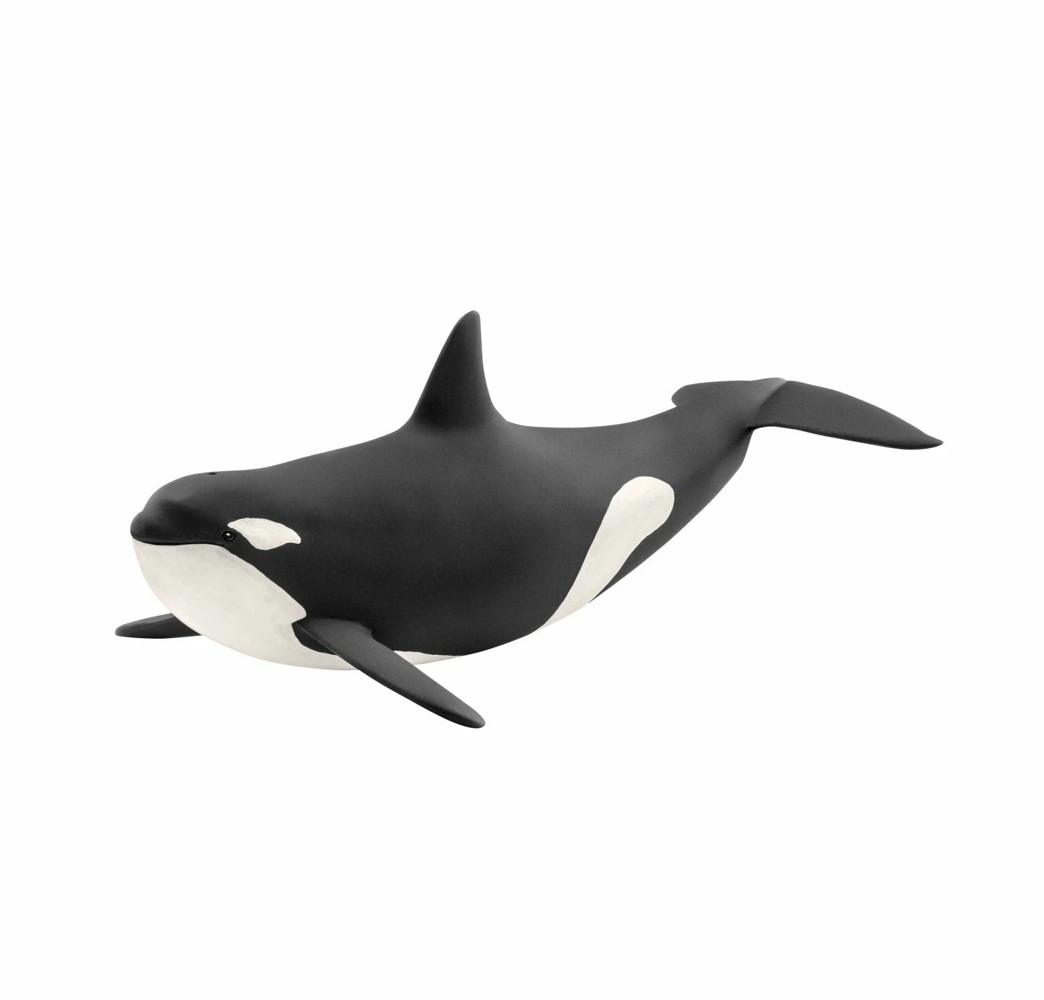 The Schleich figures are modelled with attention to detail, hand-painted with care, and provide educationally valuable playtime. The orca is a large, toothed whale that belongs to the dolphin family. Its black and white colouring makes its unmistakable. Animals swimming under it don’t recognise it, because the surface of the water is just as bright as its belly. And from above, you can hardly tell its apart from the sea floor thanks to its black back.