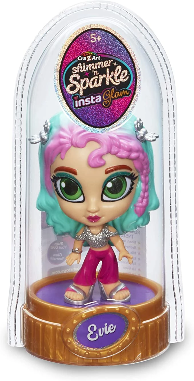 There are four Shimmer N Sparkle InstaGlam dolls to collect each with their own unique funky hair colours, stylish outfits, and on-the-go makeup colour pallets.