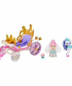 The Royal Crown Carriage has beautiful rolling glitter wheels and fold down stairs for easy access!