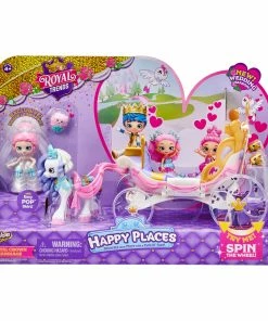 It’s wedding season in the Shopkins Happy Places Royal Trends Kingdom! Help Bridie the Lil’ Shoppie arrive in style on her big day in the Shopkins Happy Places™ Royal Crown Carriage! Watch the beautiful rolling glitter wheels move on the royal carriage as it’s pulled by the exclusive Marry Belle the bridal pony. Fold down the stairs and place Bridie inside. Pick up her friends on the way. There’s room for five Lil’ Shoppies to ride inside lovely toy carriage! With two of the cutest “Just Married” Petkins trailing behind, the Royal Crown Carriage is a ride fit for a princess! Bride the Lil’ Shoppie looks stunning in her “Easy Pop™ skirt wedding gown! In an instant she can change from her daytime dress to beautiful bride! Wedding Season is full of new lil’ happy faces to meet!