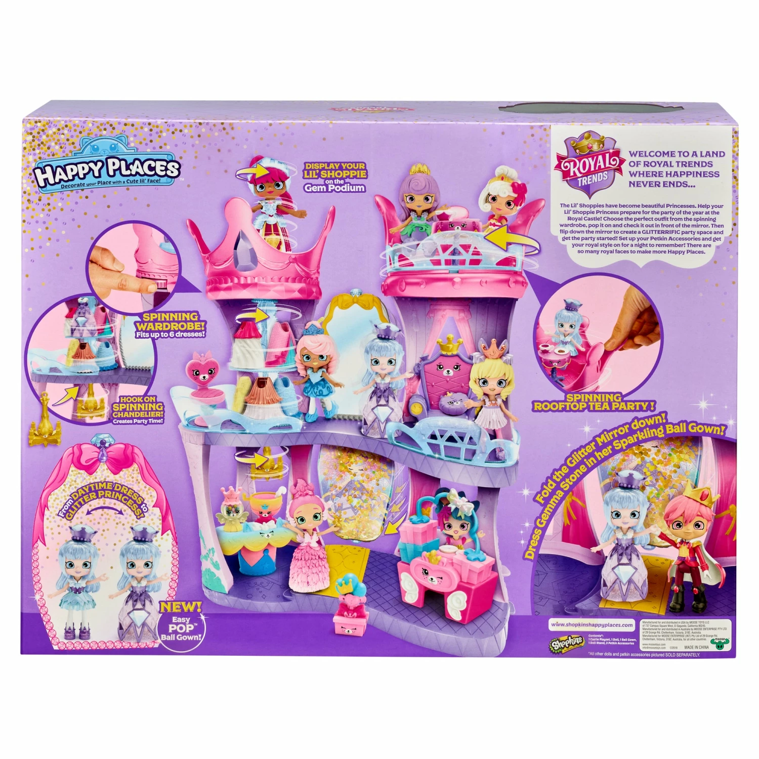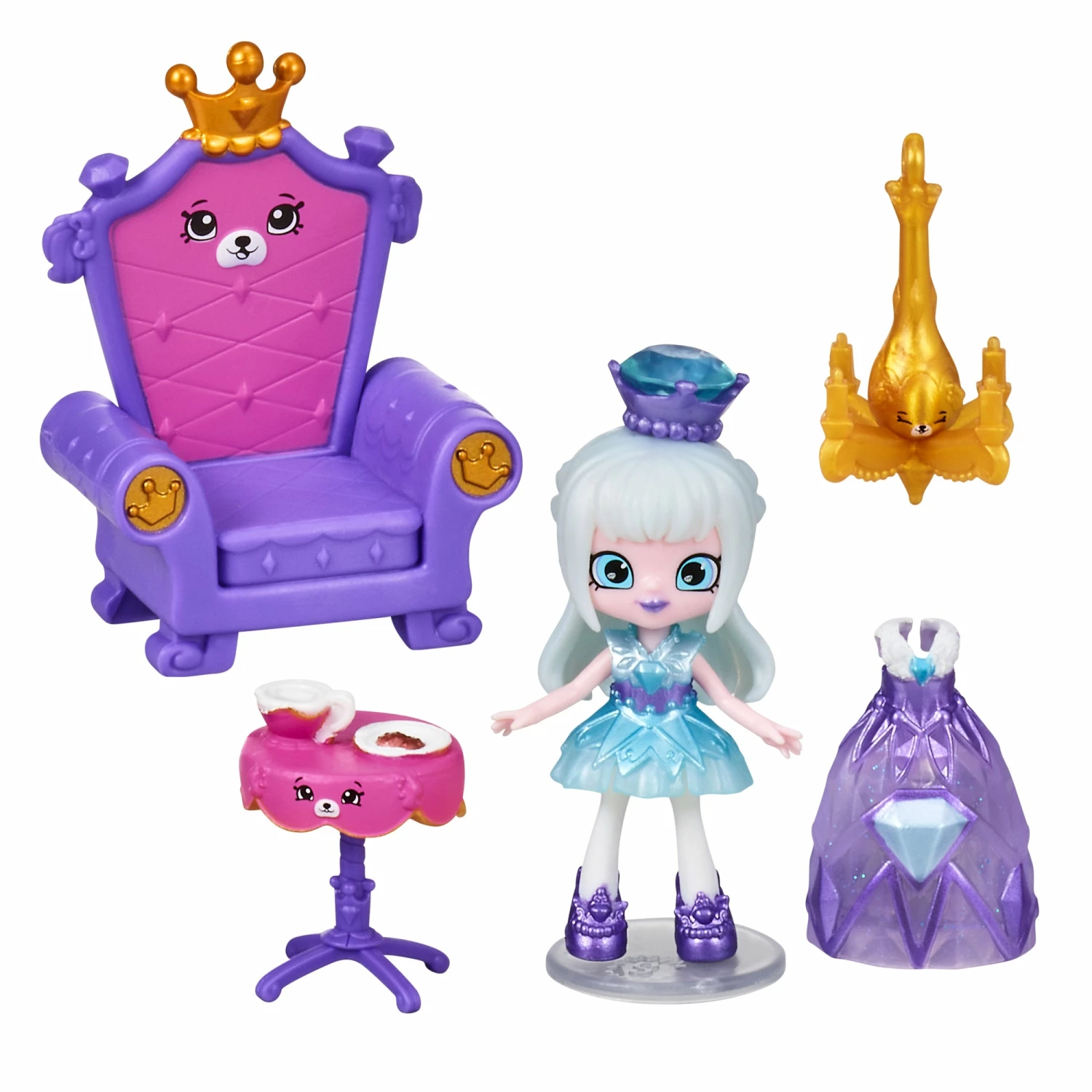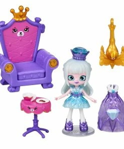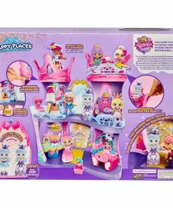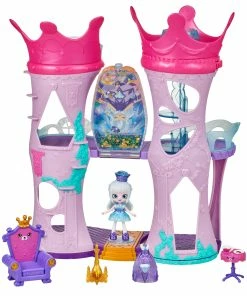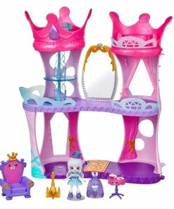 Help Gemma Stone prepare for the party of the year at the Royal Palace! There are 2 levels of fun to explore! The upper level is where the Princesses can prepare for the Royal Party. Choose the perfect outfit from the spinning wardrobe that can fit up to 6 dresses! Clip on their Easy Pop Skirt and check it out in front of the mirror. Relax on the Royal throne or take your Lil’ Princesses up to the top for spinning Rooftop Tea Party! Then flip down the mirror to create a GLITTERRIFIC party space and get the party started! The lower level is the perfect party space for all the Lil’ Princesses to show off their style. Hook on the spinning Chandelier, so everyone can see the Princesses dance moves! The Royal Palace comes with the Exclusive Gemma Stone Princess and her Easy Pop dress. This party host shines like a jewel in the royal crown, making sure all her guests have a glittering night. Use all the Petkin furniture and accessories from the Welcome Packs to decorate the Palace Perfectly!