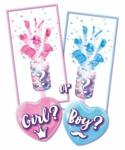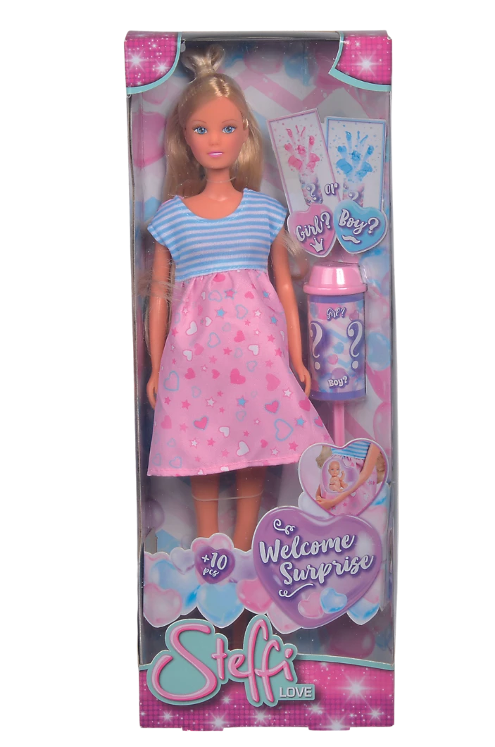Will be a boy or a girl? To find out you’ll have to shoot the cannon included in the package. If blue accessories shoot outside, it will be a boy, pink accessories are a girl. Steffi is already excited.