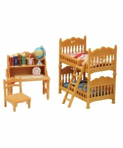 Sylvanian Families Children’s Bedroom Set contains over 15 pieces including a set of bunk beds, desk, chairs and accessories for child size figures. Figures and other accessories are not included. Age 3yrs+