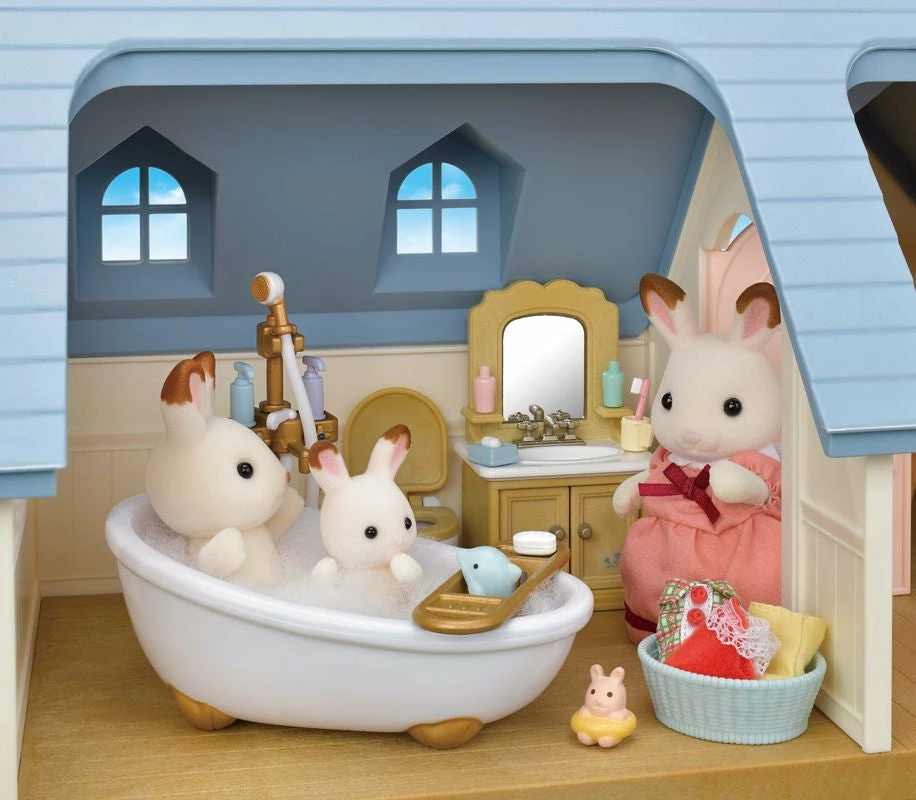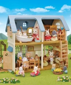 The Courtyard Home Gift set contains a large house with a courtyard and a sky-blue roof. To go along with this wonderful house, this set comes with the Floral Cat father, mother, and baby, all dressed in special clothing.