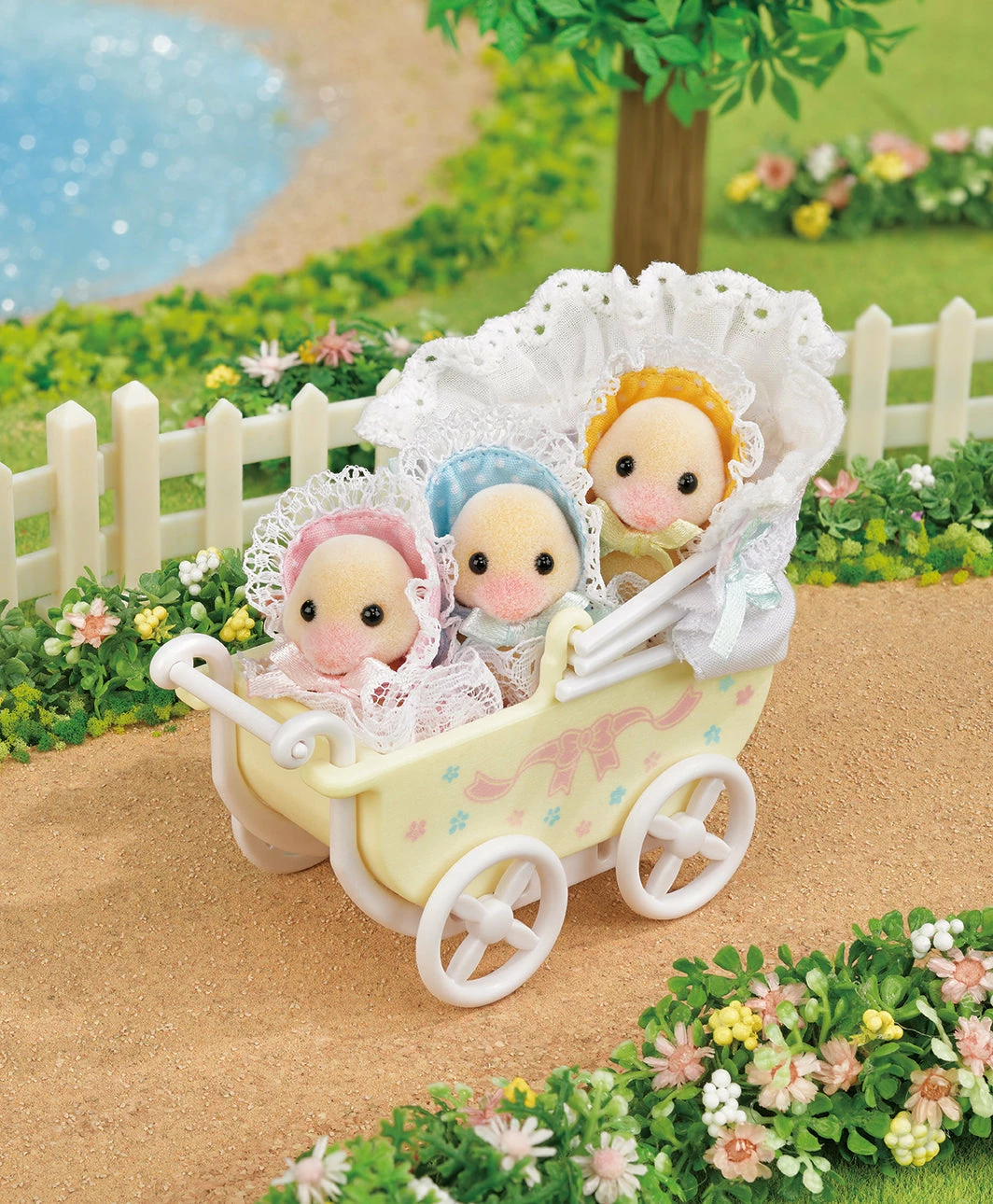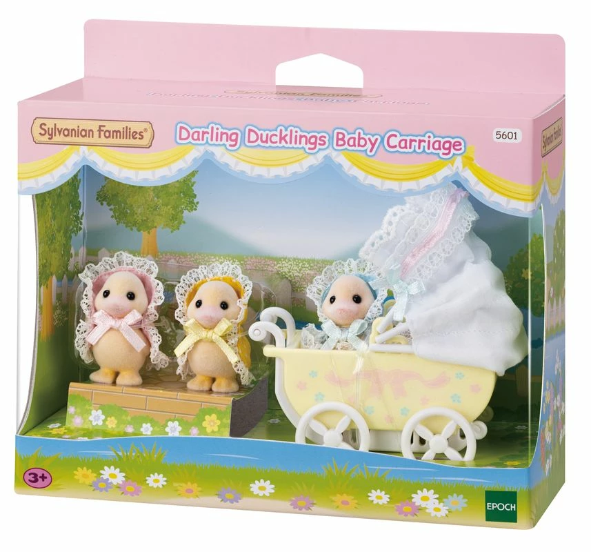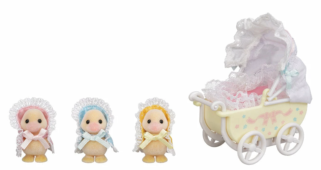 The Darling Ducklings Baby Carriage features the Duck triplets in pastel coloured baby bonnets with enough room in the carriage to carry all three ducklings!