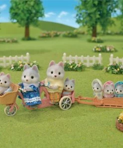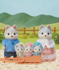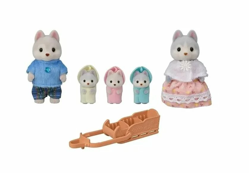 Meet the Sylvanian Families Husky Family. The Huskies have beautiful fur to keep them warm and the adorable triplets are wearing matching hooded outfits and they can ride in the sleigh! The mother and Father can also hold the sleigh and take them for a ride!