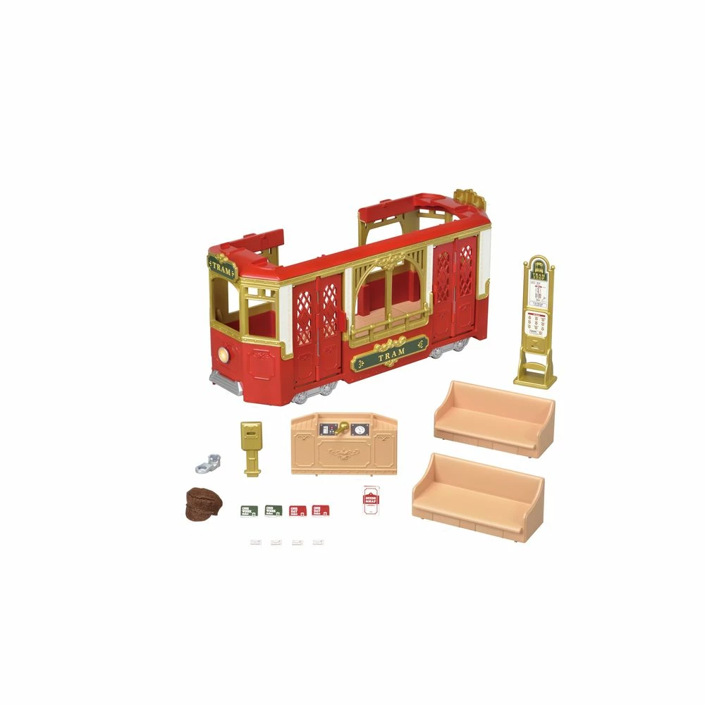 This elegant red and gold detailed tram provides the perfect form of transportation within and around town. Its detachable seats will allow you to create various layouts for your passengers comfort, includes a tram stop, ticketing machine and drivers hat.
