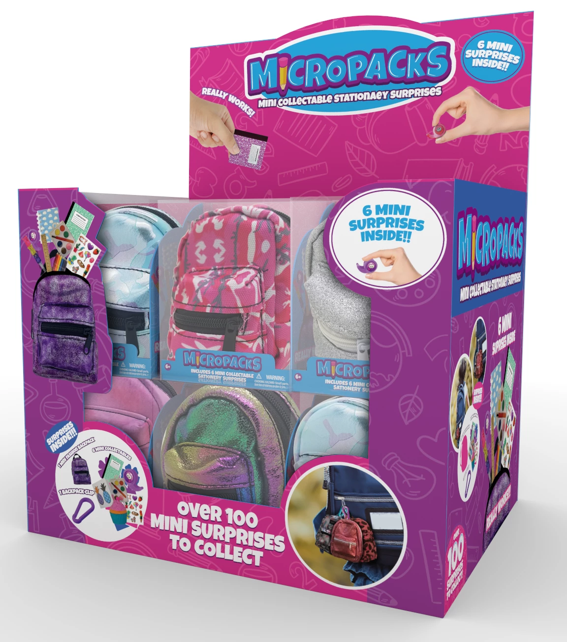 Micropacks are mini collectible stationary surprises! Grab a Micropack and unbox the mystery gifts inside. Inside each Micropack box you’ll find 1 mini fashion backpack which is filled with 6 micro suprise collectibles. Surprise micro collectibles include mini notebooks, stationery, stickers and more! Each backpack includes a carabiner clip to attached to your backpack or pencil case. Take them with you everywhere!