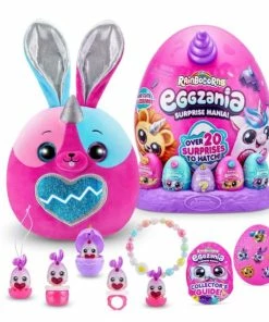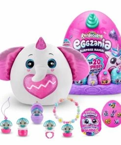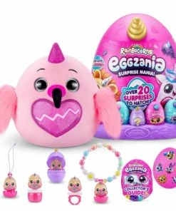 Crack into all-new Rainbocorns Eggzania! This egg is oozing with over 20 surprises and brand new kooky cute Rainbocorns characters. Remove the egg from the nest to hatch your super-squishy Rainbocorns Eggzania plush! There are 6 Eggzania animals to collect including Roary the Lion, Peanut the Elephant and Daffy the Flamingo!