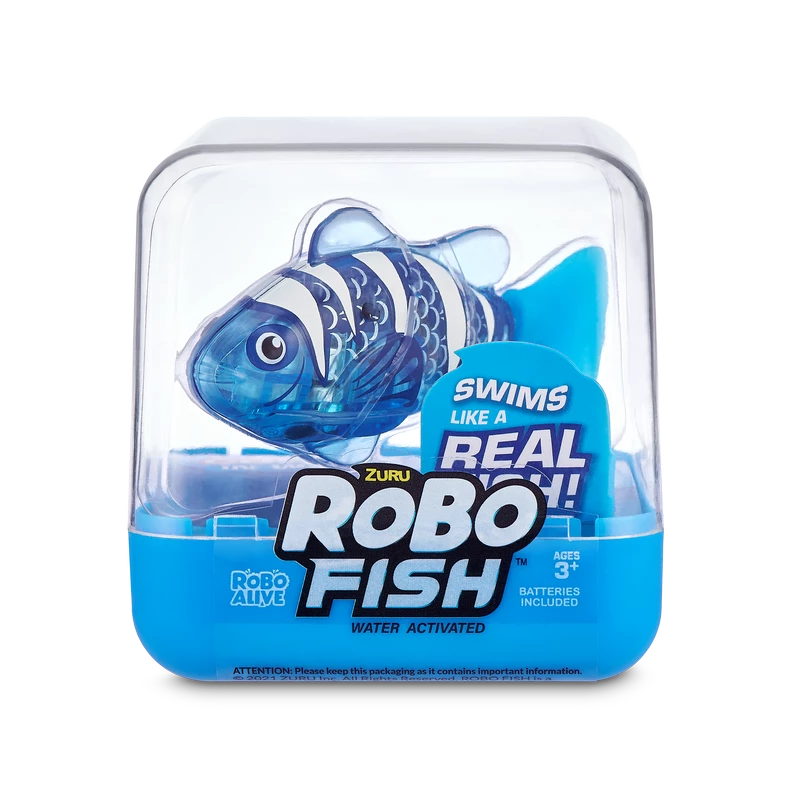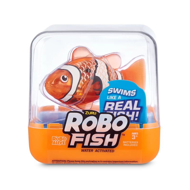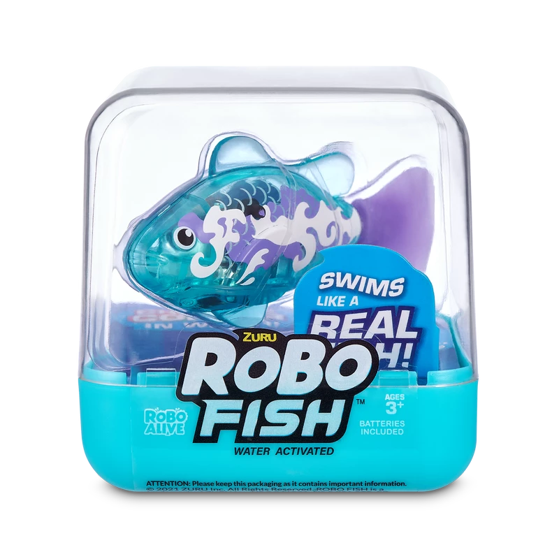The new ZURU Robo Fish by Robo Alive are the most iconic real- life robotic swimming pets ever! Drop them in water and watch them swim in 5 different directions and dive up to 6ft as Robo Fish’s water activated technology bring these fish to life like magic!